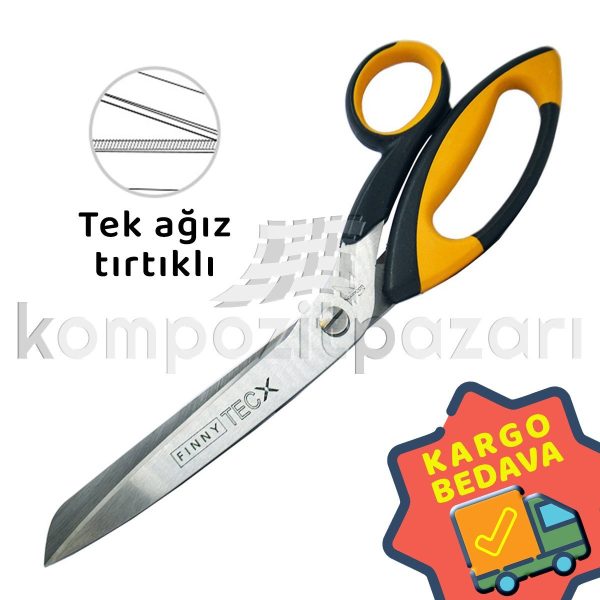 Almanya’nın lider makas üreticisi Kretzer firmasının Solingen çeliği kullanarak özel olarak kompozit sektörü için geliştirdiği Finny Tech XX makaslar cam, karbon ve aramid elyafların rahatlıkla kesilmesini sağlar.