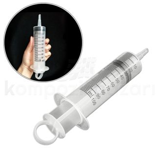 Şırınga 100 cc (ml) tek olarak temin edilmektedir. Şırınga 100 cc (ml) PP malzemeden üretilmiştir. Solvent, boya, reçine ve jelkotlar ile kullanıma uygundur. Enjektör haznesinin üzerindeki siyah baskılı ölçüm dereceleri hassas ölçüm yapılmasını sağlar. Sıvı ham maddelerin büyük ambalajlardan, küçük miktarda ve tam ölçüsünde alınarak kullanıma hazırlanmasını sağlar. Polyester temizleyicisi ile temizlenip tekrar kullanımı mümkündür.