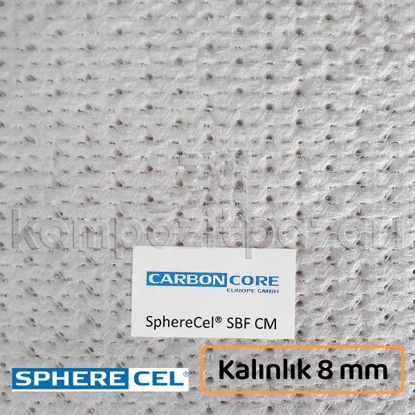 SphereCel SBF/CM; 6, 8 ve 10 mm kalınlıklar için tercih edilmektedir. RTM ve İnfüzyon üretimleri için uygundur. Basınç altında kalınlık kaybetmeye karşı dirençlidir. Ortasındaki akış filesi sayesinde kapalı kalıplamada akış medyumu sağlayarak ıslanmayı garantiler.